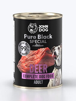 400g. John Dog Pure Black Special Edition nat Hondenvoer Hert