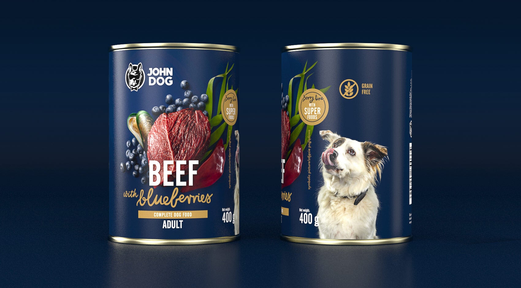 400g. John Dog Berry Line nat Hondenvoer Rund&Bosbessen