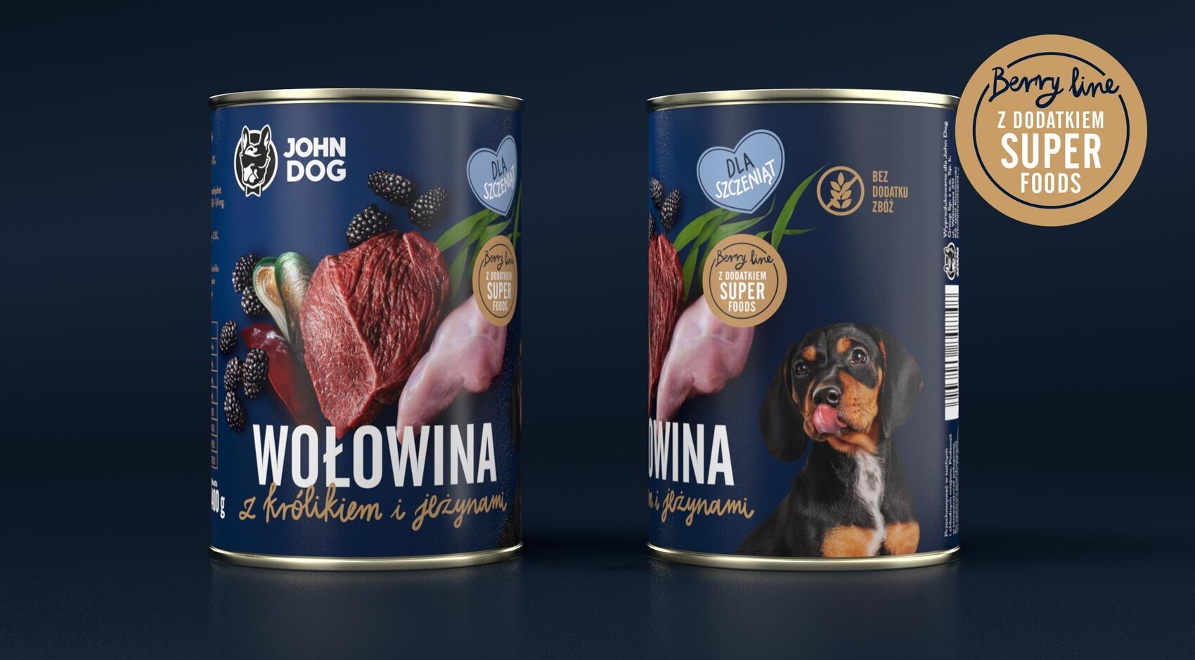 400g. John Dog Berry Line nat Hondenvoer Rund&Konijn met Bramen Puppy