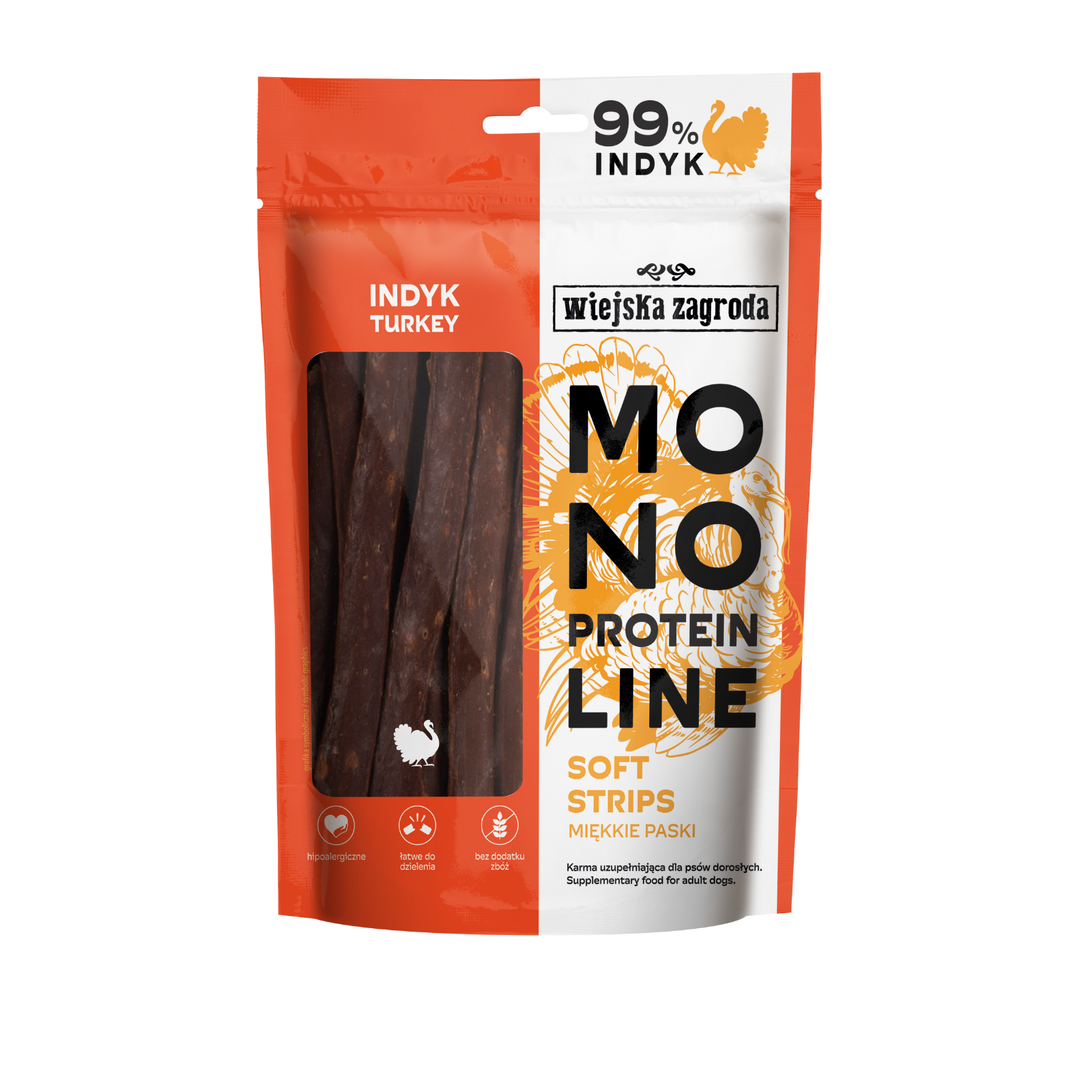WIEJSKA ZAGRODA MONOPROTEINOWE MIĘKKIE PASKI - INDYK