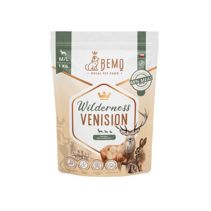 1kg. Bemo Wilderness Venison - droog Hondenvoer Hertenvlees