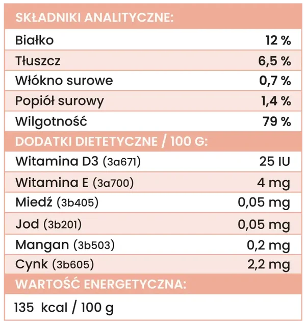 Wapń: 0,3% ; fosfor: 0,25%