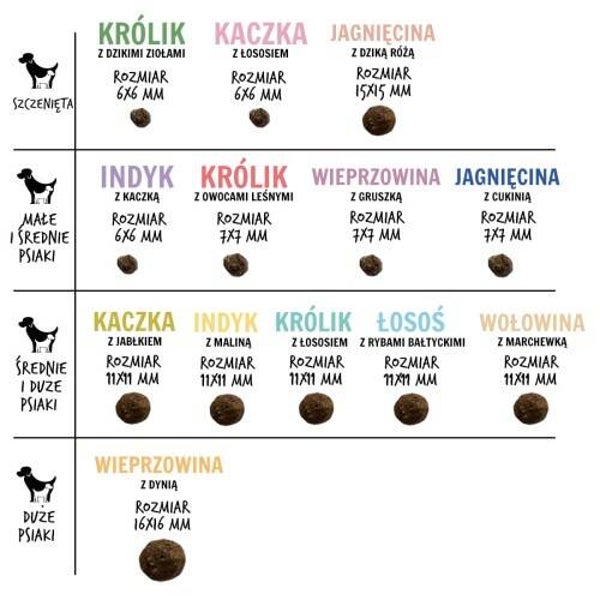- Karma nie zawiera grochu ani zbóż, wysoka smakowitość oraz łatwa przyswajalność