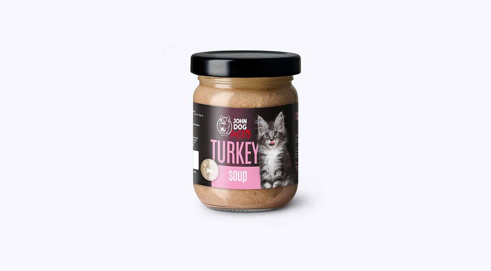 100g. John Dog nat Kattenvoer voor Kittens Kalkoen Soep Mono-Eiwit