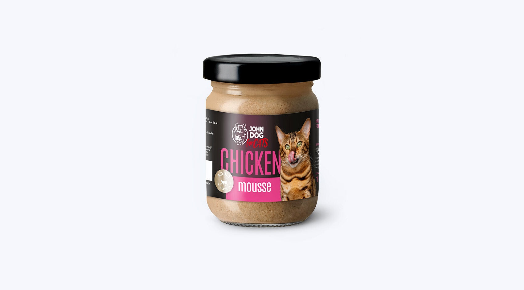 60,7% mięso z kurczaka, 16% serca z kurczaka, 14,9% wątroba z kurczaka, 4,8% olej z łososia, 3,2% świeże żółtko jaja kurzego, 0,3% agar, tauryna, węglan wapnia.